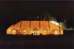 Exterior of Traditional Poled Marquee at night